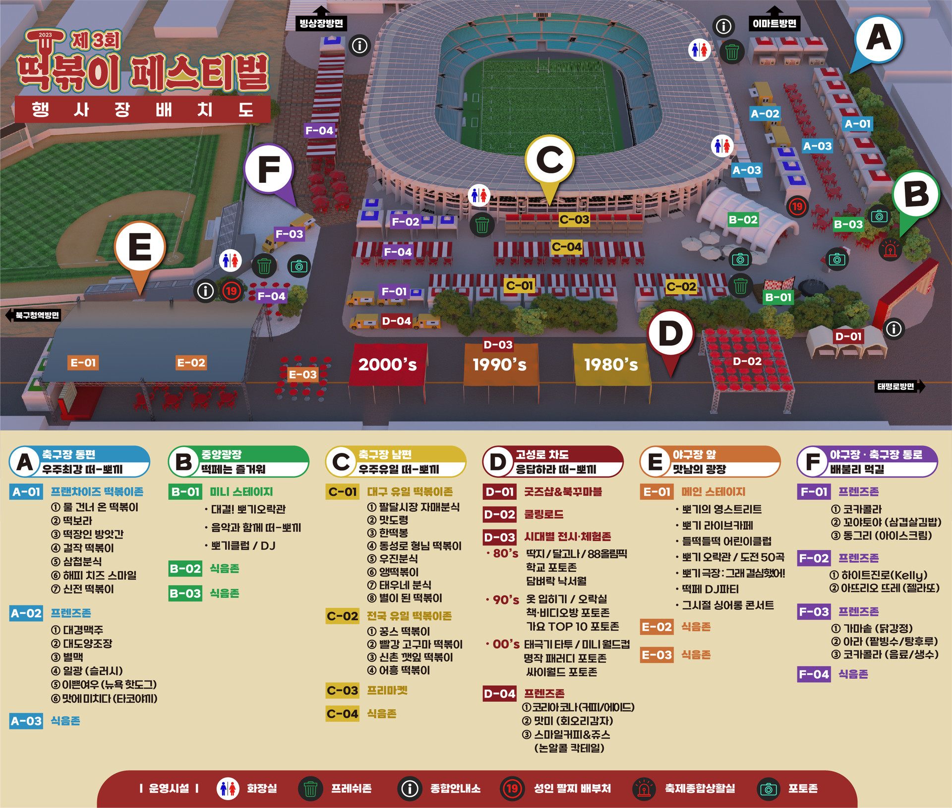 이번 대구 떡볶이 페스티벌에는 전국에서 유일무이한 대구 로컬 업체들의 떡볶이를 먹어볼 수 있는 떡볶이 존과 프랜차이즈 떡볶이만 모아 놓은 떡볶이 존에서 갖가지 떡볶이를 다양하게 맛볼 수 있다고 해요.