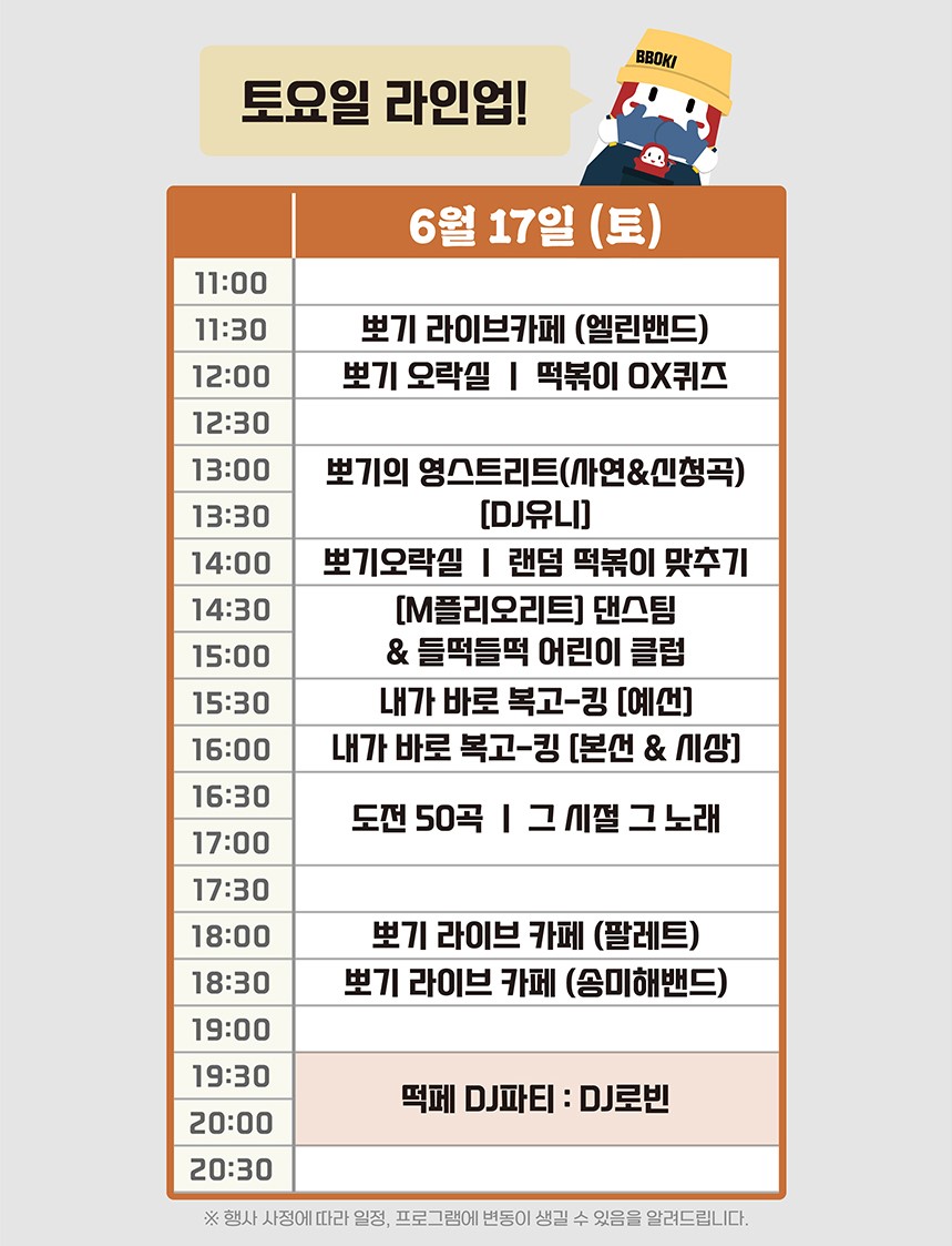 - 라인업 : 엘린밴드, 팔레트, 송미해밴드, DJ유니, DJ로빈, 너들, 주D, DJ용석, 브리즈, 딴따라 패밀리, 윤성 & 아프리카 밴드
